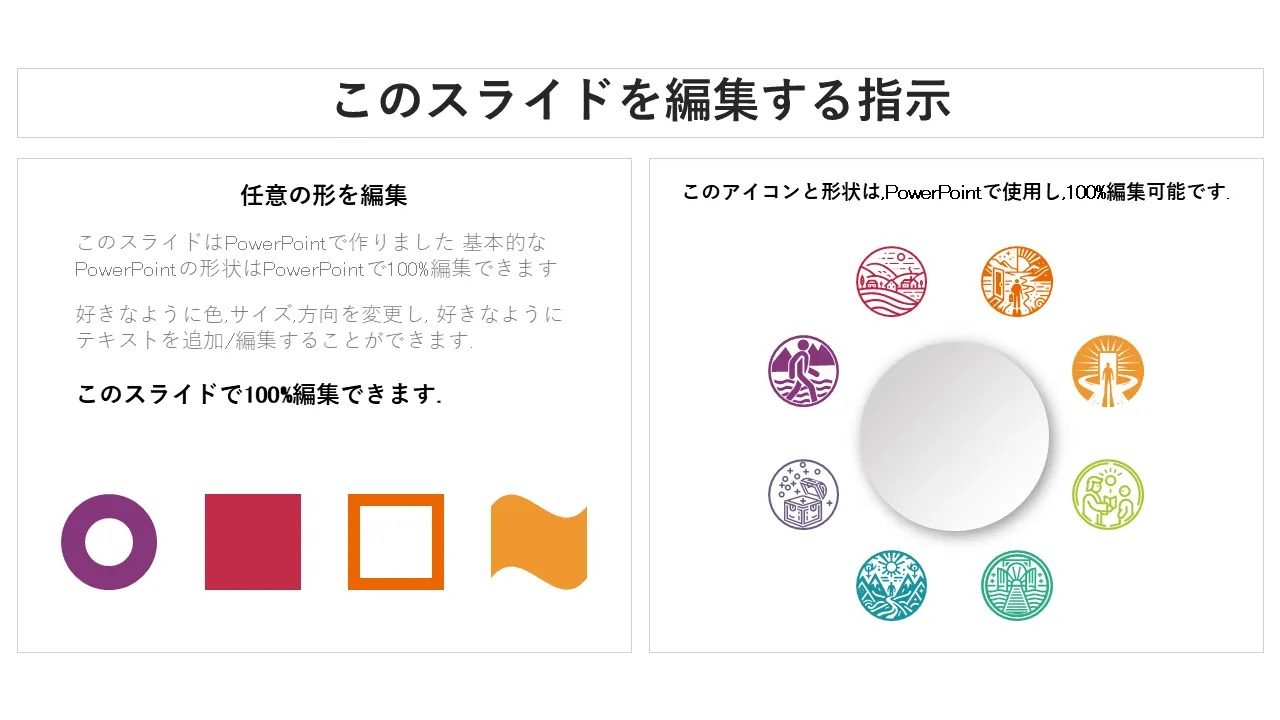 - 完全に編集可能なテキスト、図形、色、アイコンブランドのカスタマイズ