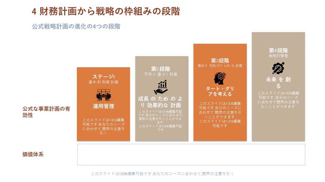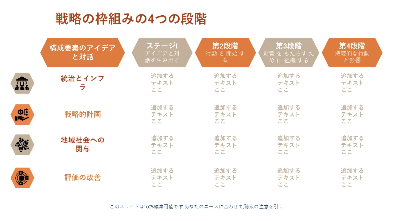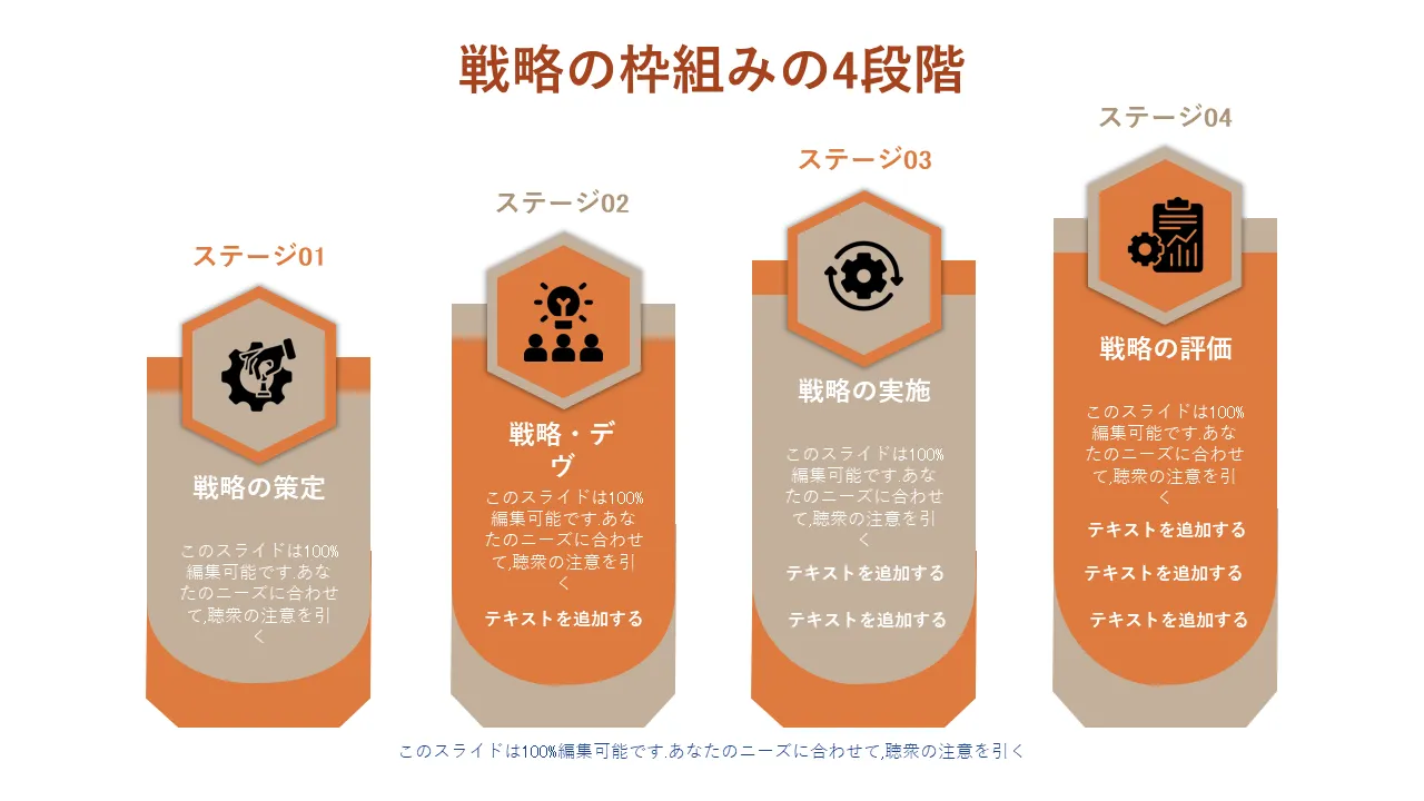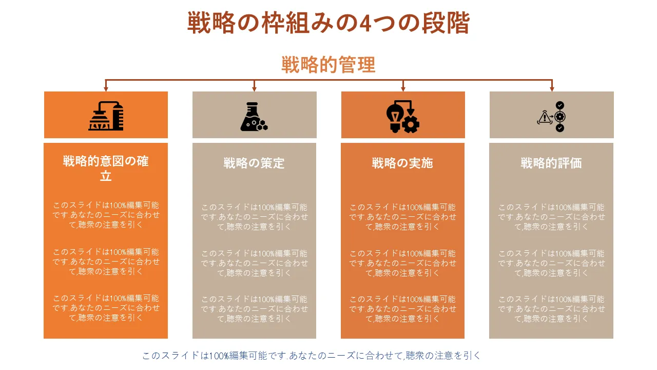 4 フェーズ戦略実装フレームワーク PowerPoint テンプレート
