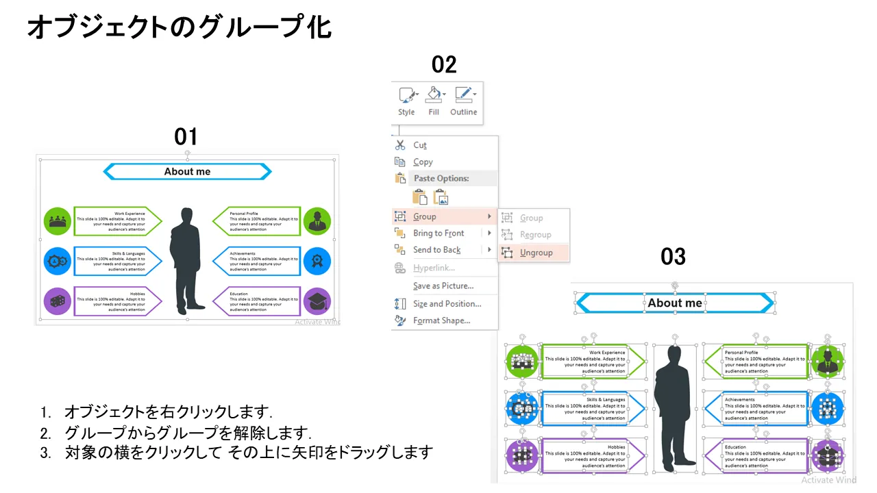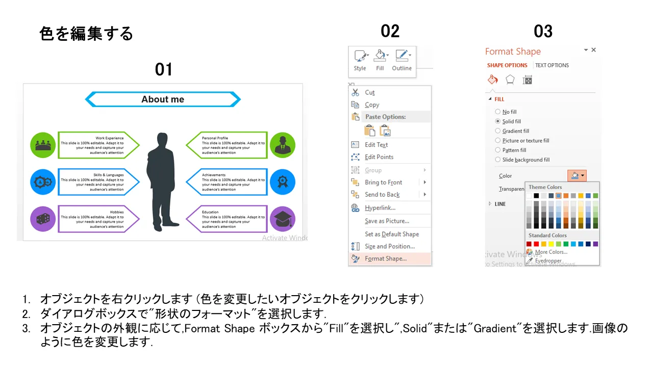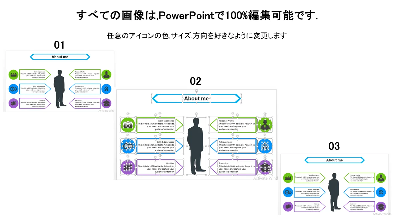 自己紹介パワーポイントプレゼンテーションの例の特徴