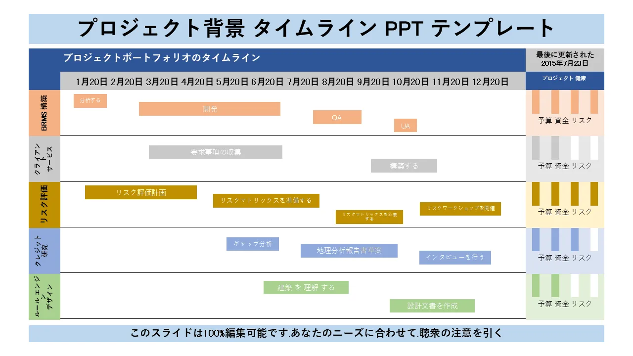 ビジネスプレゼンテーション用のプロジェクト背景タイムラインPowerPointのテンプレート