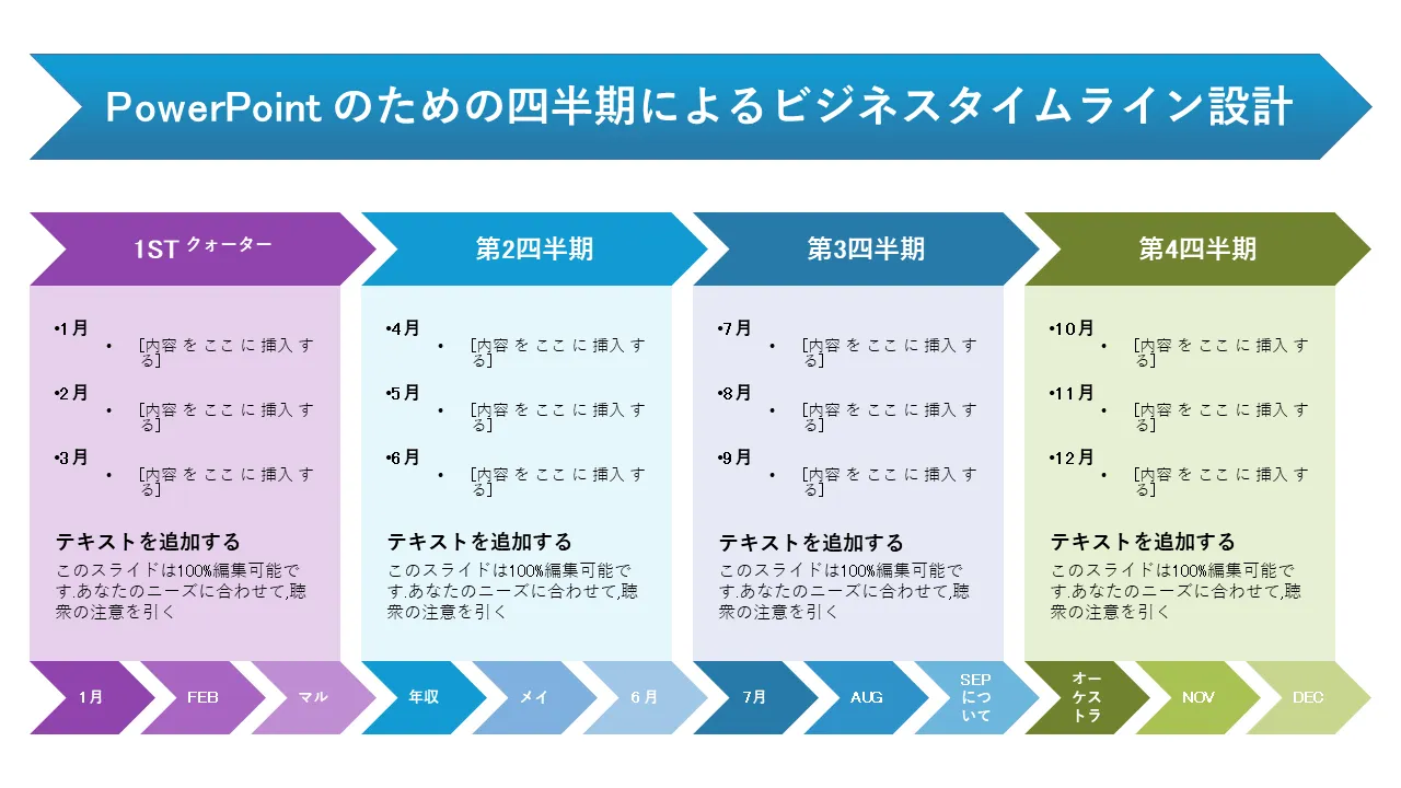 Powerpoint の四半期ごとのビジネス タイムライン デザイン