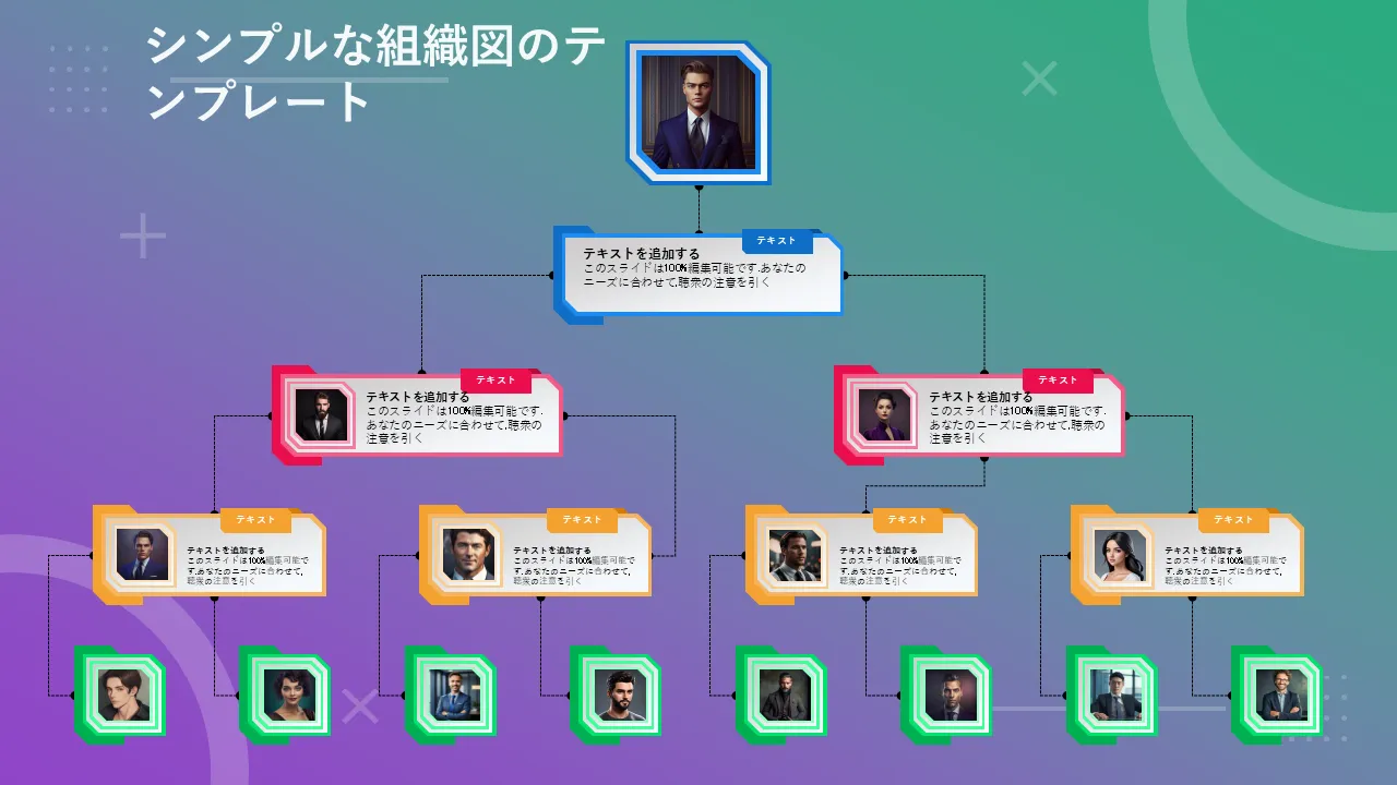 ビジネスプレゼンテーション用の組織図PowerPointのテンプレート